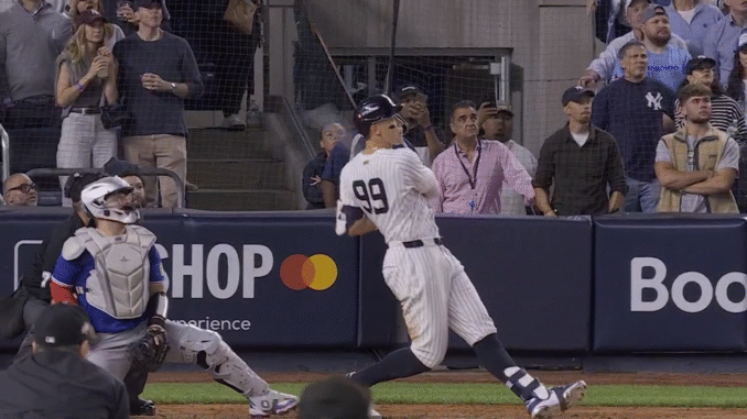 Judge’s HR came off a 99-MPH fastball from Louis Varland thrown way up and inside — an almost impossible pitch to pull and rip off the foul pole no less. Judge went 3 for 4 in the game — singling and scoring the Yankees’ 1st run in the 1st, and doubling in a run in the 3rd to make it a 6-2 game at the time and begin the NY comeback from the 6-1 deficit.