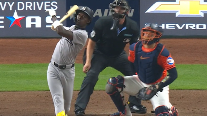 Ben Rice hit a double-play grounder to 2nd — but Jose Altuve, whose defense has fallen to very sub-par levels the last few years — muffed the throw to 2nd — throwing it away for an error and Yankee run.